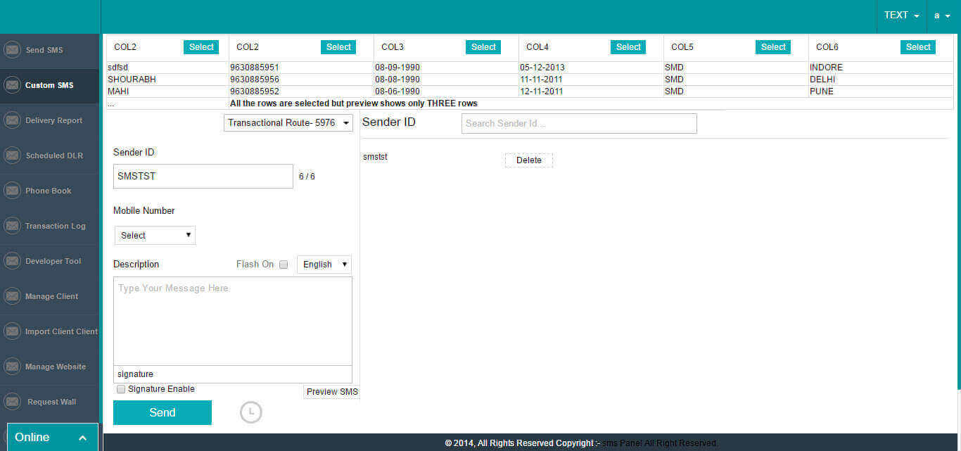 Custom SMS are also known as Advanced SMS . These are used to send the individual information to the particular person in the same time in a single click.