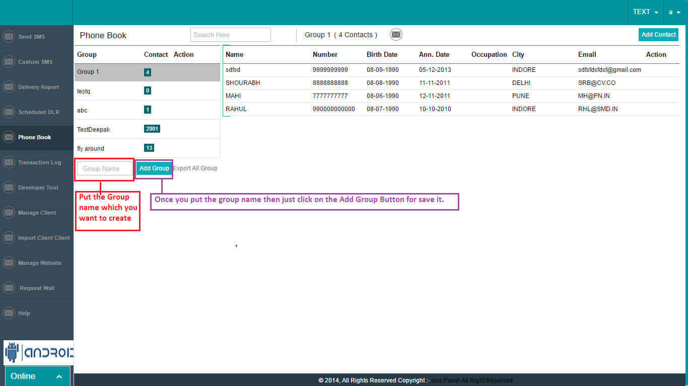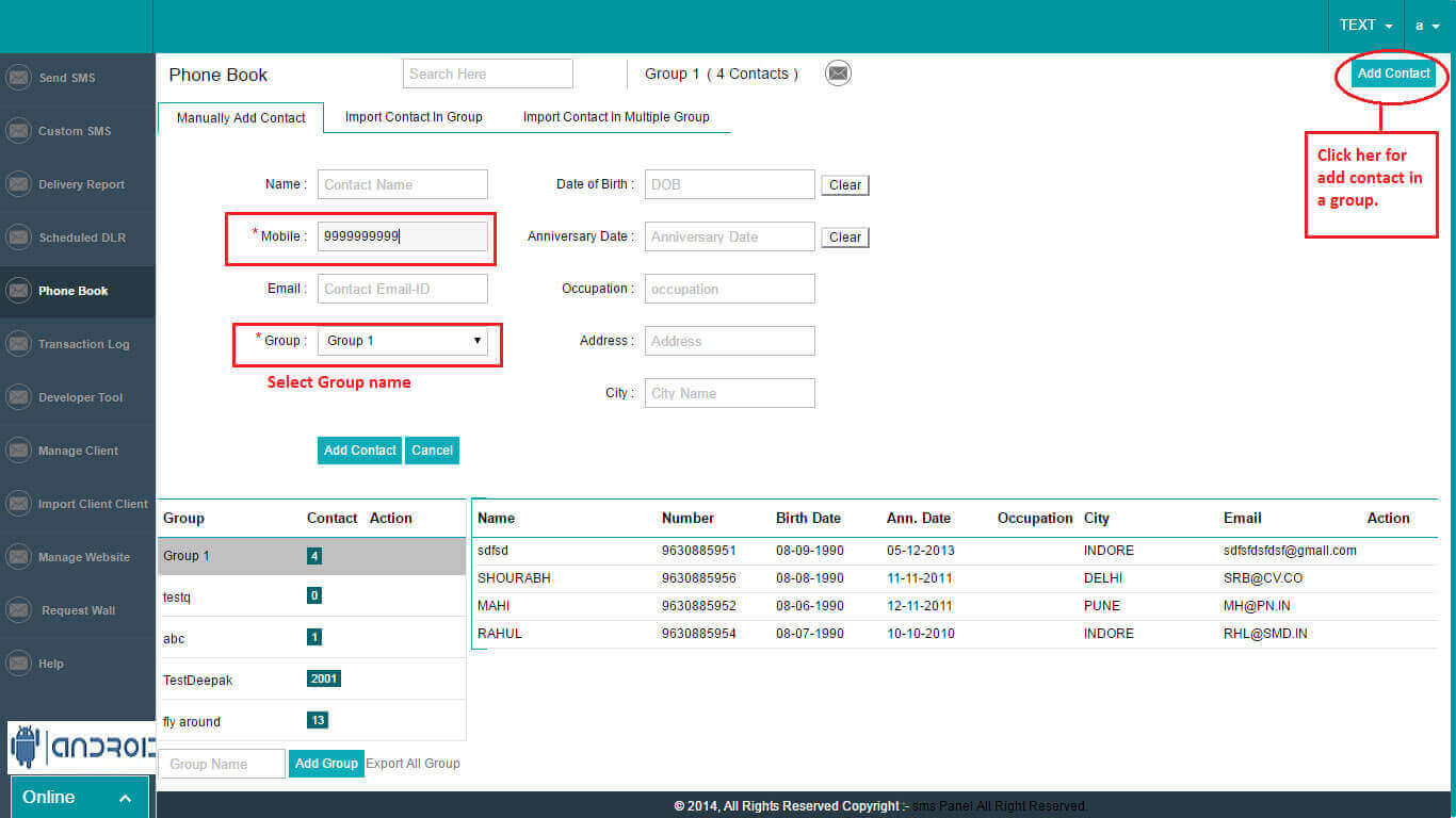 As we save the contacts in our cell phone in the same manner we can group our contact online with the help of phone book option. Just create the group and save the contact under them.